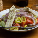 Χωριάτικη σαλάτα με φρέσκια ντομάτα, αγγούρι, φέτα και ελαιόλαδο